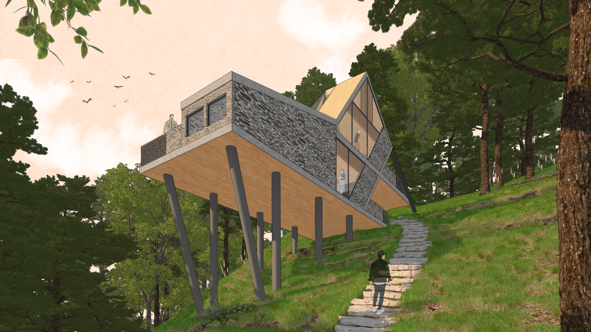 Set against the steep, pine-covered slopes of Gallu, Himachal Pradesh, the proposed Wellness Retreat creates a sanctuary that treads lightly on the dramatic landscape. The master plan weaves together a network of nine private residential cottages, a restorative spa, and a main community hub featuring a library, lounge, and dining spaces. The design employs angular, geometric volumes that orient large glazing towards panoramic views, fostering a deep, restorative connection between the user and the serenity of the natural environment.